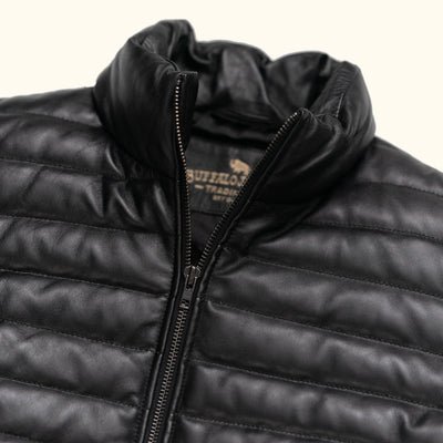 Want to read more about the benefits of soft leather like lambskin? Lambskin is an exceptionally wearable and soft leather. Its natural, lightweight layers give it a distinctive, velvety texture. Even though lambskin leather is thin and lightweight, it still does a good job of keeping out the cold, making it an ideal material for a leather down jacket. Because of its delicate structure, lambskin is treated less harshly in production than cowhide and requires more hand manipulation. This often results in lambskin being more expensive than cowhide, which is why it’s generally reserved for premium leather products like our Bridger Leather Down Jacket.