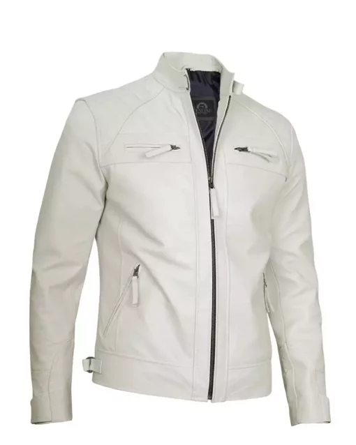 Mens Classic Cafe Racer Biker Quilted Leather Jacket