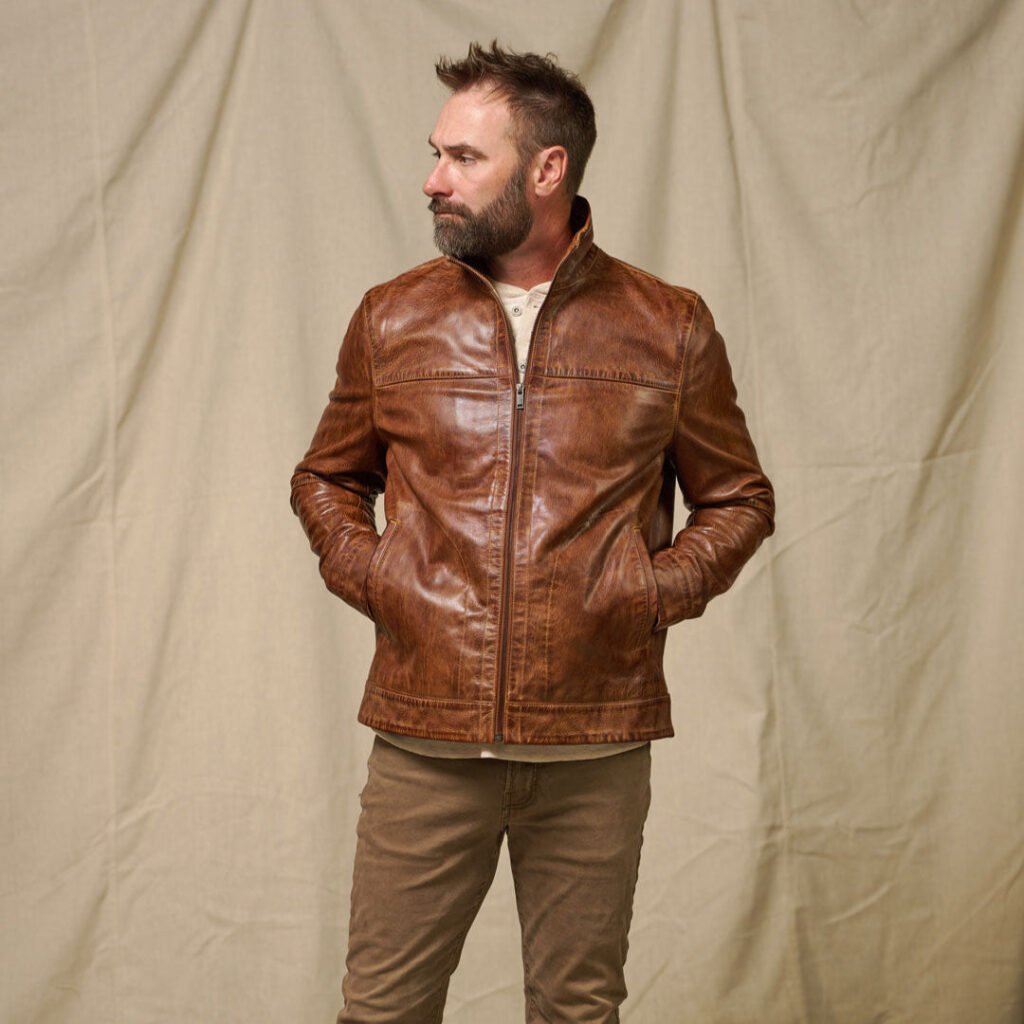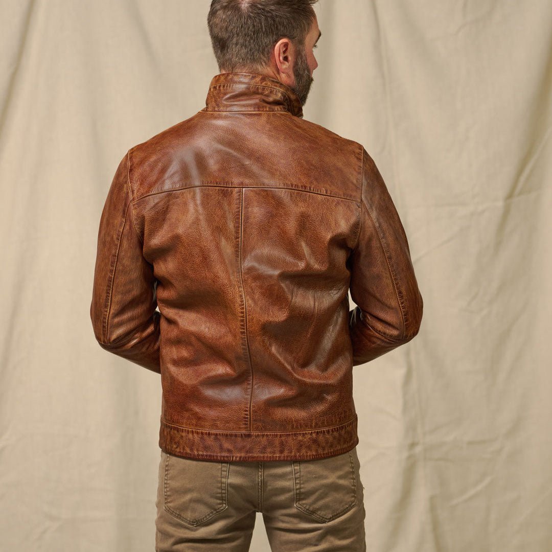Crafted from full-grain leather with a one-of-a-kind vintage brown wash, The Sedona offers the look of a well-aged piece while keeping a clean, timeless silhouette. The jacket breaks in easily, softening with every wear until it feels like a second skin. A lightweight chambray lining inside ensures year-round comfort, whether thrown over a tee on a spring morning or layered up for crisp autumn nights.