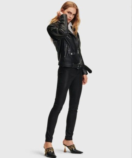 Featuring an asymmetrical front zip closure, wide lapel collar with metal hardware, and a belted waist, this piece captures authentic biker styling while maintaining everyday versatility. The tailored structure enhances your shape, while the smooth inner lining ensures all-day comfort.